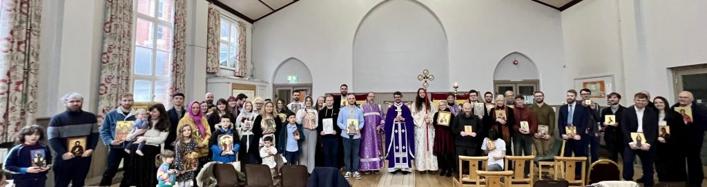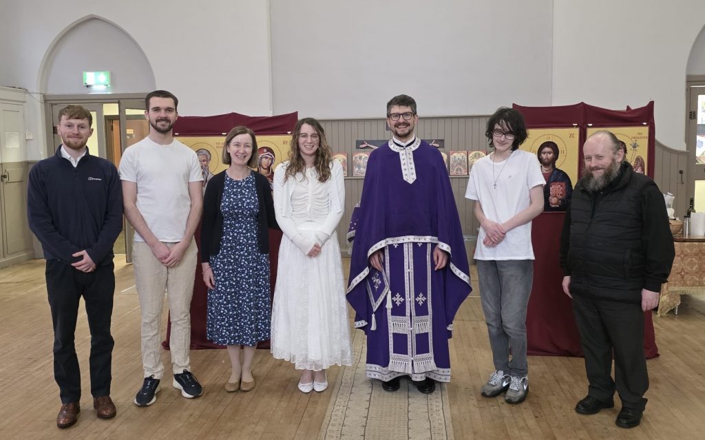 On Sunday, 1 March, the day began with the baptism of our three catechumens. Luka was received with the name Joseph, after St Joseph the Hesychast; Faye received the name Faith after St Faith of Agen; and Andy was received with the name Justin, after St Justin the Martyr (the Philosopher). It was a very moving service, and many people gathered to welcome the newly illumined into the Orthodox Church.